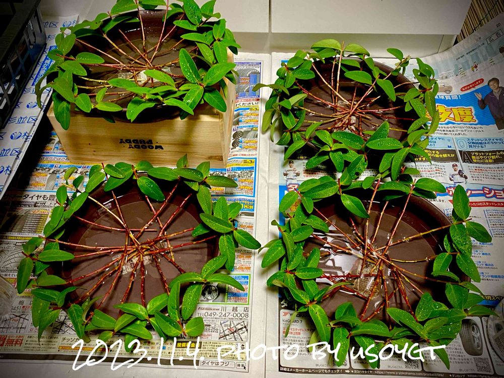 暖秋…チャレンジ…キンシバイの枝茎を水上げ…二、三日後に鹿沼土に挿木…発根を期待してますね🤗