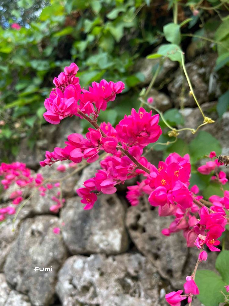 首里城近くの小径の石垣にアサヒカズラが盛り盛り咲いていました