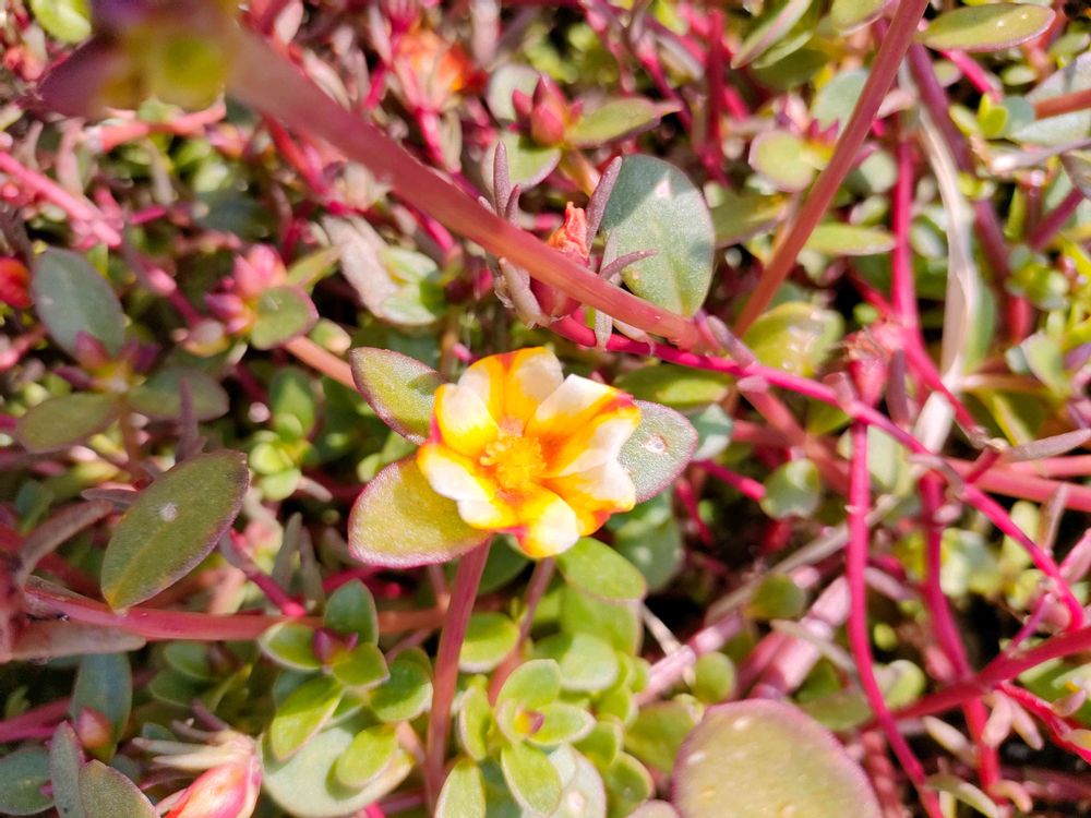 こぼれ種で、ポーチュラカ、こんなに、咲いた事ないので、わかりませんが、この子は、久しぶりに、咲いてくれました。🤭