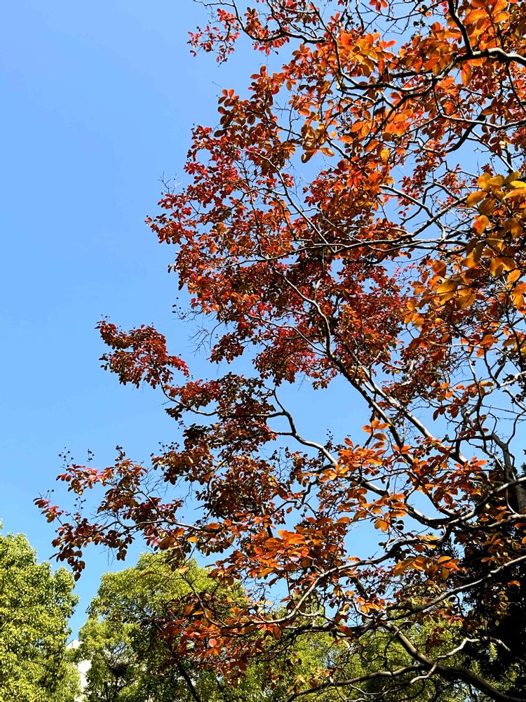 いつもの散歩公園のサルスベリの木が綺麗に紅葉してました🍁🍂🍁