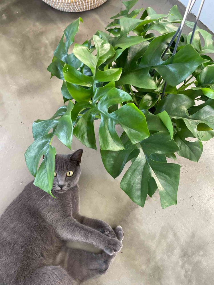 🌿と🪴をメインに🐈⬛🎞️📚🍺 チラチラ登場するグレイの猫は洋猫風ですがワイルドな環境から保護された元野良猫🐈⬛ 葉っぱ齧っちゃうこの子のお陰でハンギングは得意