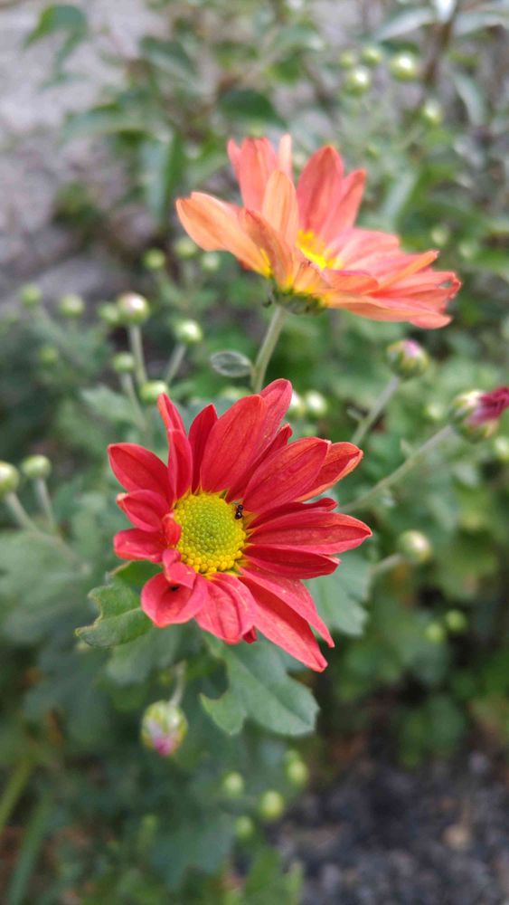 ここには白と黄色とこの赤い小菊が咲きますが、いつも放ったらかし😅でも気になって見てましたら、今年はこの子が一番に咲き始めました✨