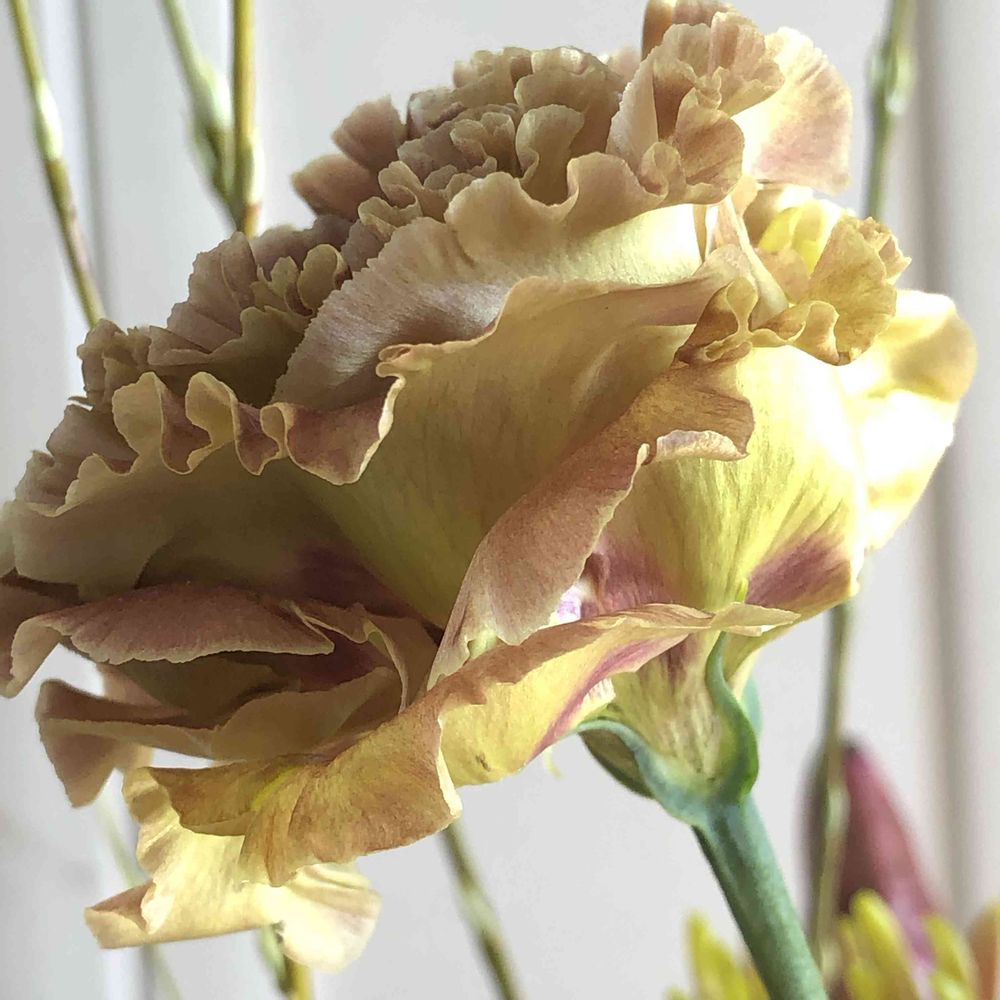 アレンジに使用した花材を一つずつ撮影していたのですが、八重咲きのトルコキキョウが綺麗で、こればっかりに💦