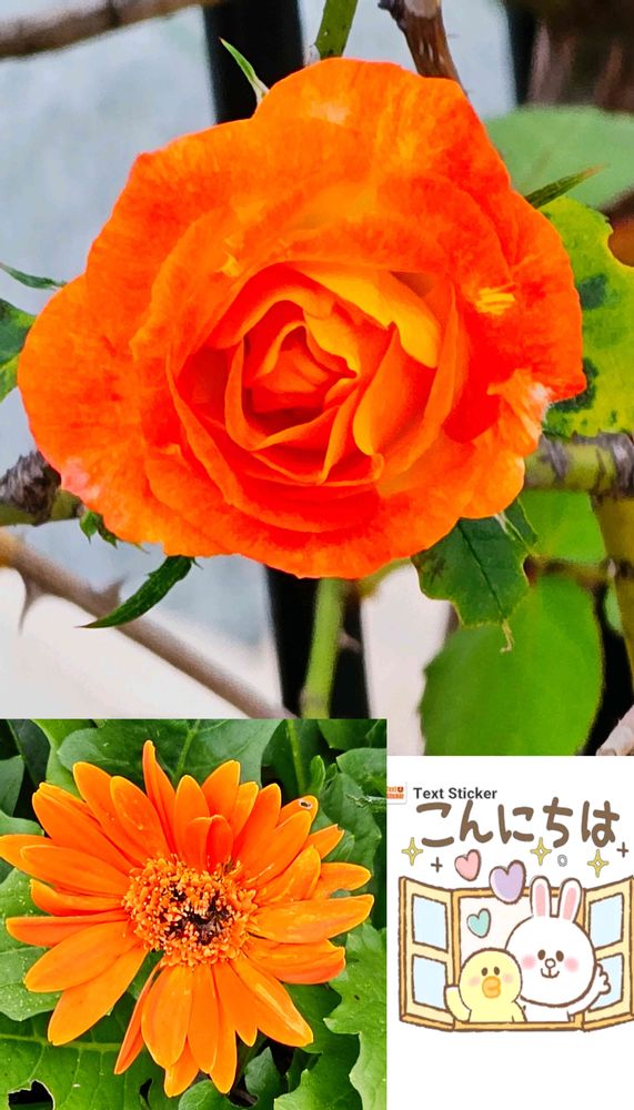 ↙️オレンジ🍊色のガーベラサンに二つ目のお花が咲きました😃⤴️