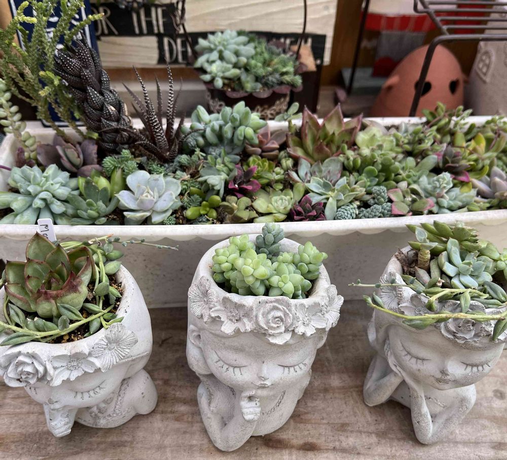 可愛らしい三人娘さんの鉢にこれまたかわいい寄せ植えが入ってますね(๑♡∀♡๑)