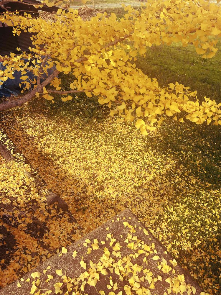 黄色い色💛の銀杏の絨毯はとっても綺麗でした。富山、この3日間はとっても暑かったそうだね💦😅