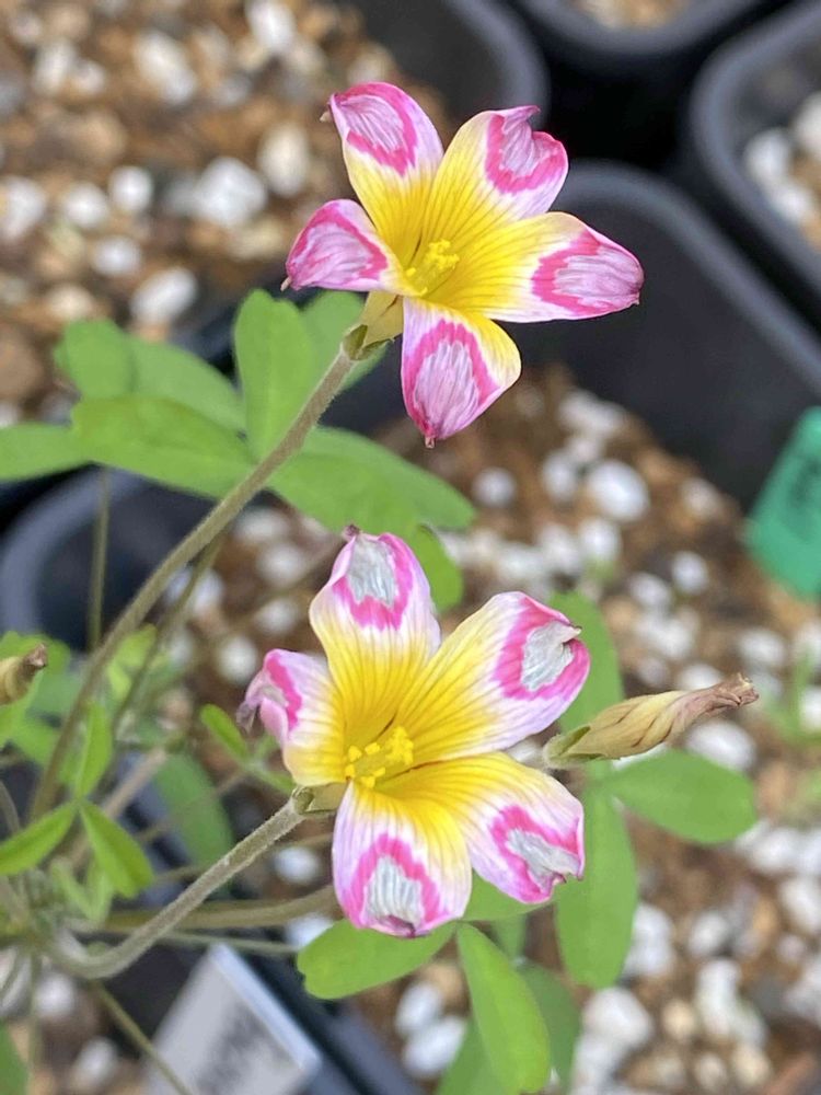 オキザリスを中心に、小さな庭で花を楽しんでいます。