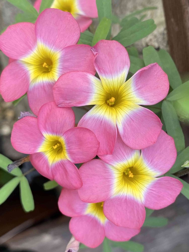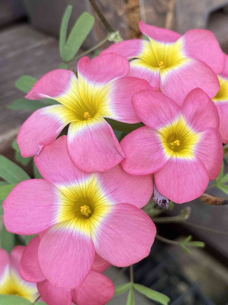 オキザリスを中心に、小さな庭で花を楽しんでいます。