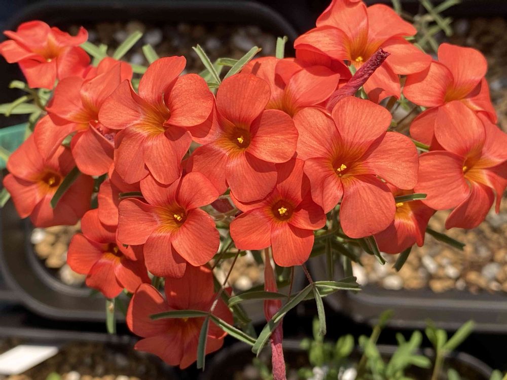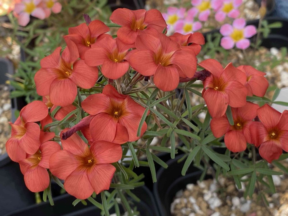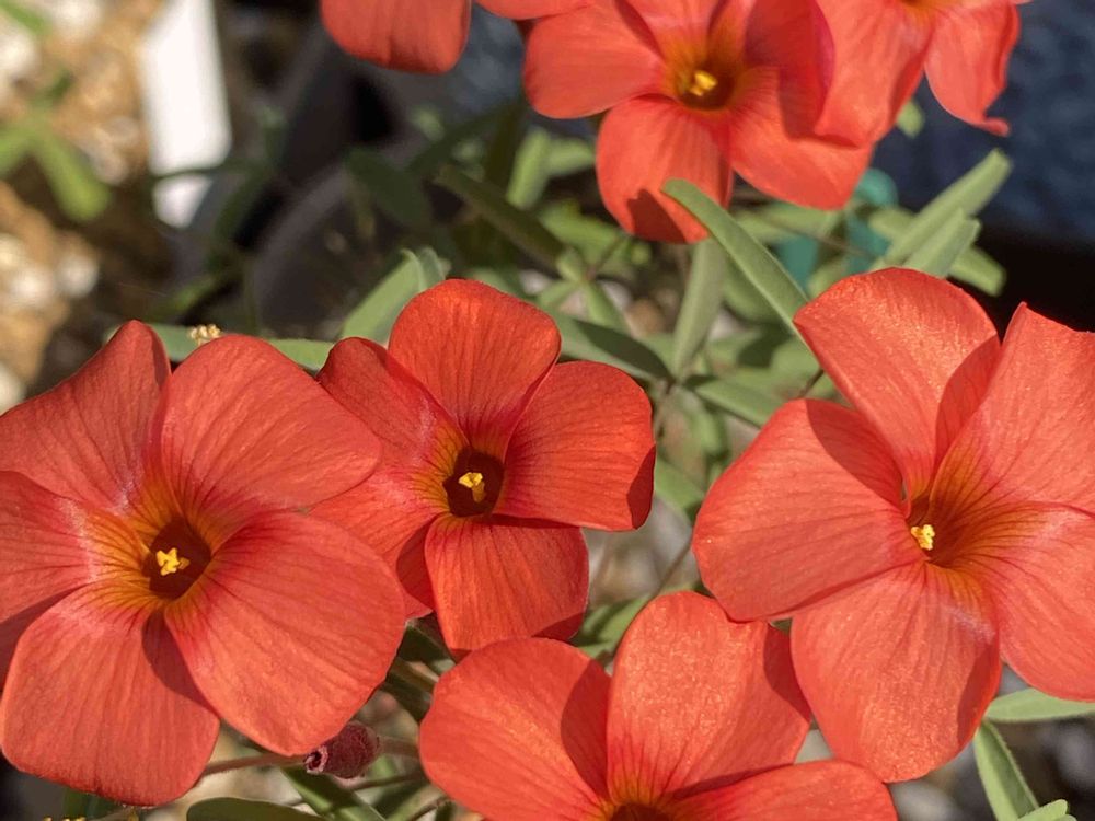 オキザリスを中心に、小さな庭で花を楽しんでいます。