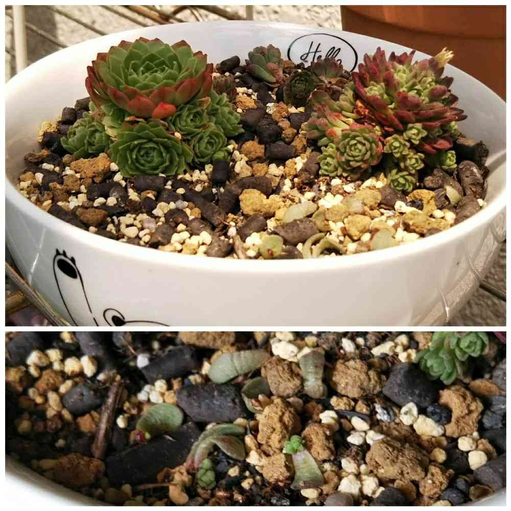 ランナー?いくつかちぎって周りに植え、植えるときにむしった葉っぱおいてたら、芽が出てました!