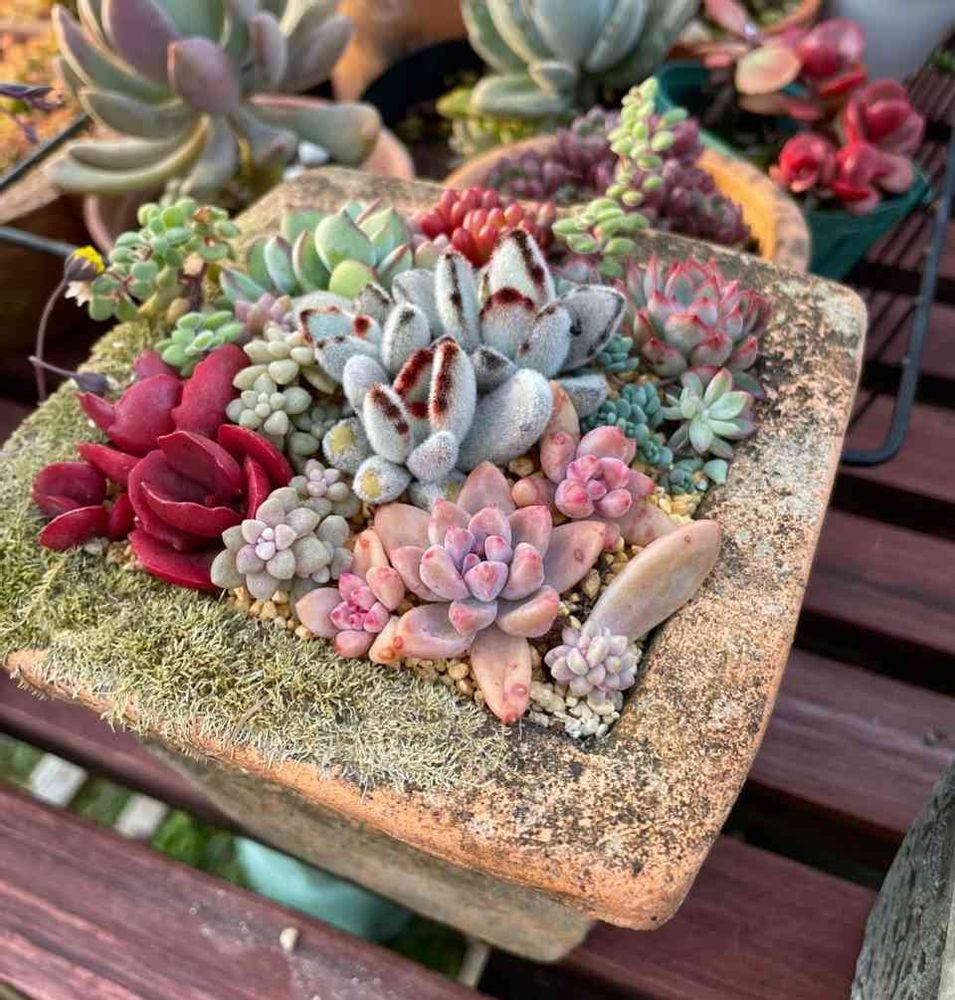 多肉植物,庭の鉢植え,四角い多肉丼の投稿画像