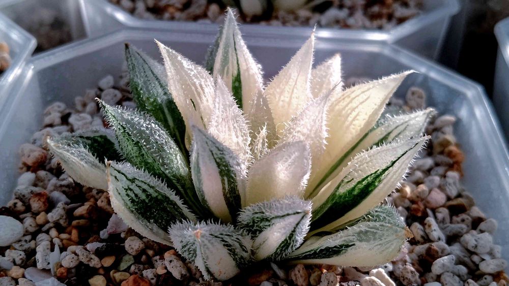 ☝️🤓植物全般好きです。 多肉に魅了され どっぷりハマってます。😁🎵 エケベリア、セダム系にハマり、サボテン系、パキポディウム、ユーフォルビア、そして今はハオルチアにハマりつつあります。😎 錦じゃないハオも好きですが、錦のハオはもっと好きです。😍😻🤣😋😋 最近は、錦多めの投稿してます。 上手く皆さんにハオルチアの魅力を伝えられたらと思います。😆😁 ☝️🤓どの植物も年中ベランダ管理をしています。冬越えも大変ですが、夏越えが管理してて難しくて、一番の課題です…😅 今年も頑張ります。😸😸 あと、無言フォローは問題なくOKですが、一つも投稿してない方からのフォローには申し訳ないですが、フォローバックしませんので宜しくお願い致します。🙇🙇🙇🙇🙇🙇 お互いの投稿画像見合っていいねや、コメントしたいじゃないですか☝️🤓それにご挨拶のコメント返しも出来ないとスッキリしないですしね…😅😅🤣