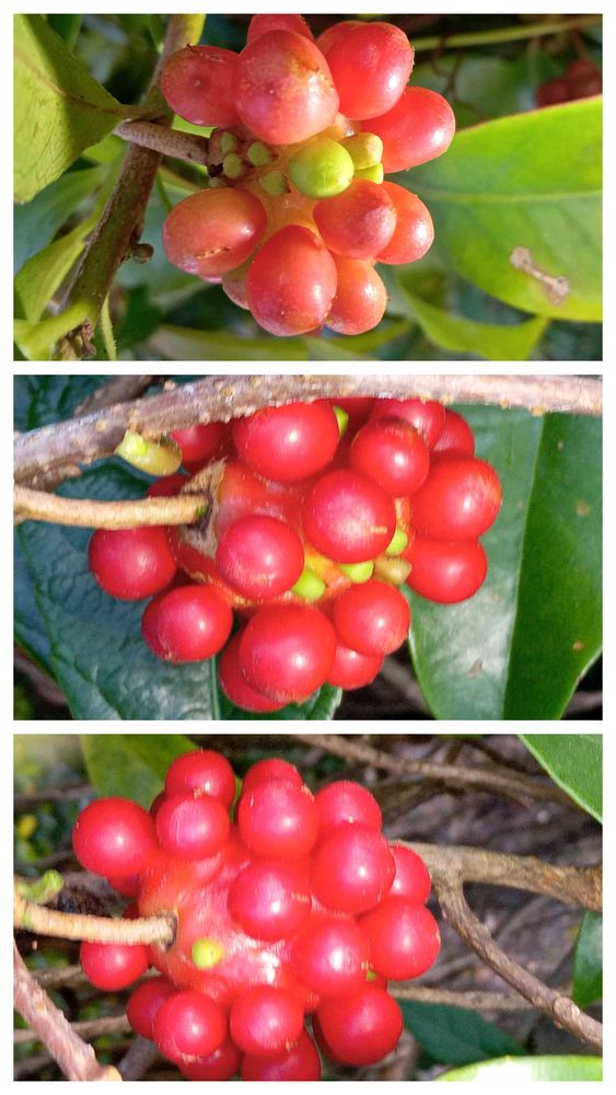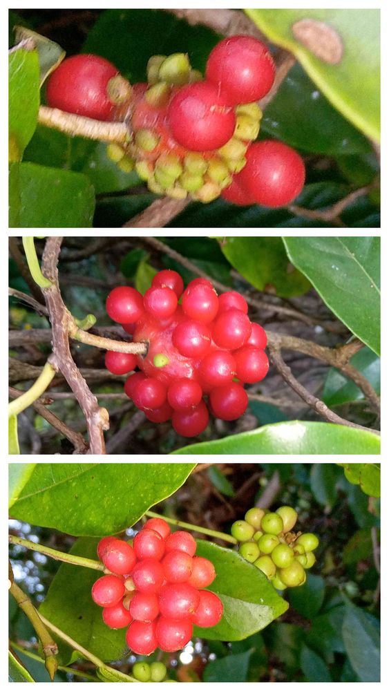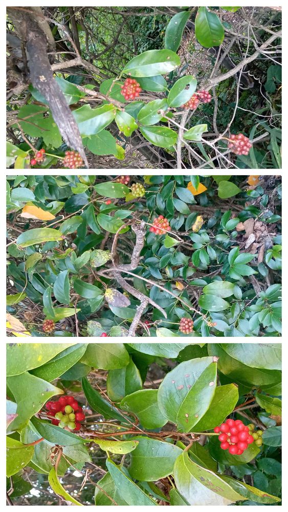 いつもの海散歩途中では刈り込まれて 数個しか出逢えず 少し離れたサネカズラの壁(私が勝手に名付けた)へ 毎年50個以上のサネカズラが実を付けます