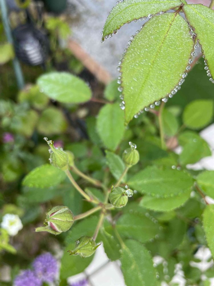 昨日の庭より…当方、毎朝のように霧が濃くて朝露が…