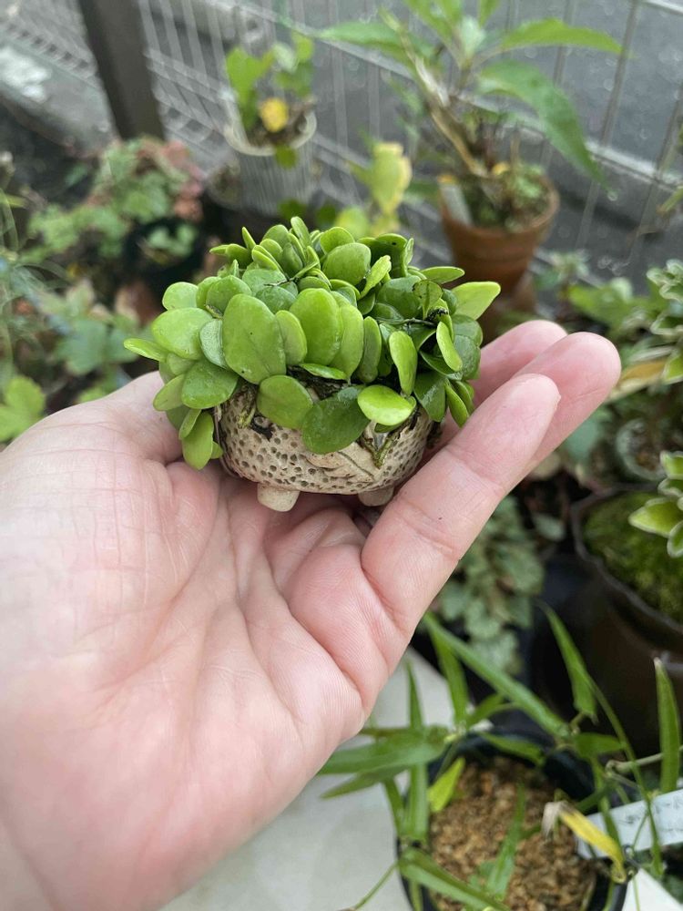 最近、山野草を始めました。旦那は盆栽、私は下草を学び始めました。 自宅で陶芸しています、豆鉢など作っています。の