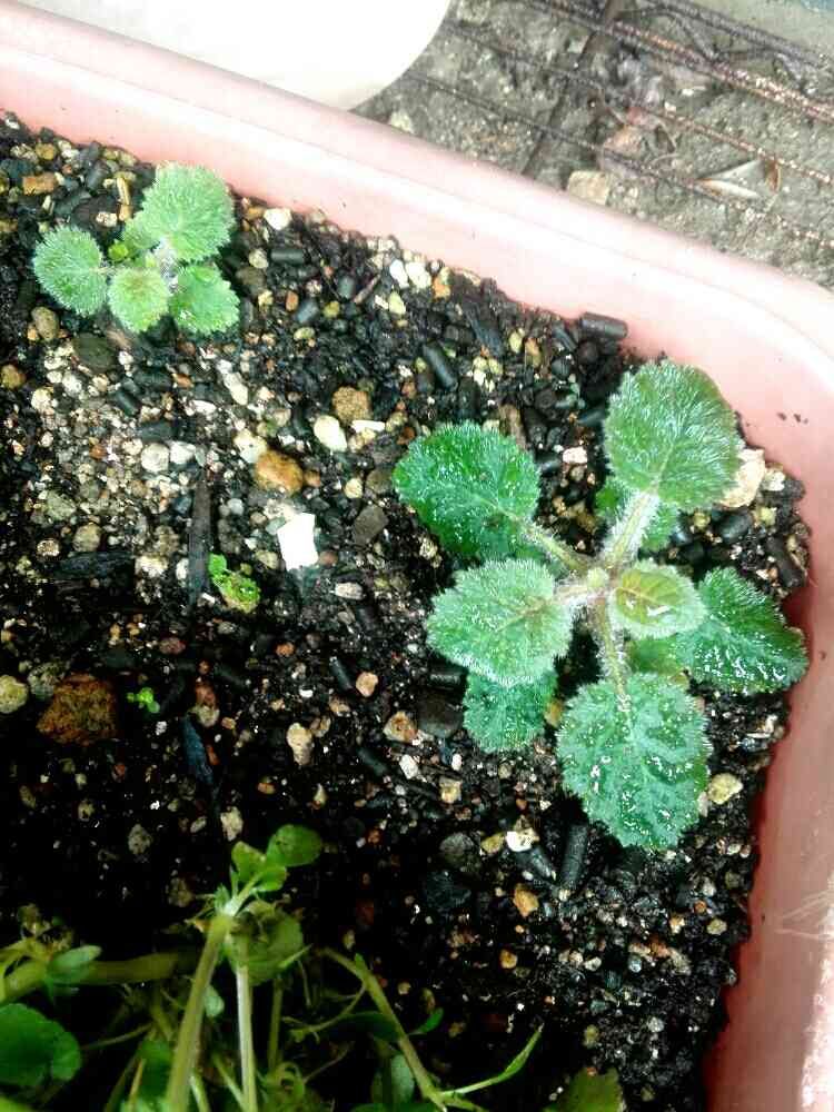 サクラソウの小さな芽が、梅雨の蒸し暑さにもかかわらず、成長しています。