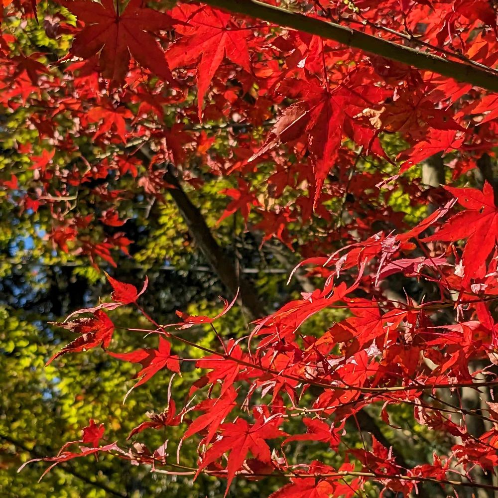 「はい」いい音がしましたよ。🎵🎶(#^.^#) 日当たりの加減で紅葉🍁してる木と青もみじも綺麗でした。