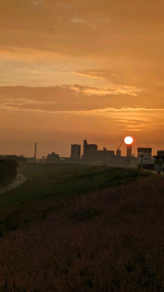 🏢に朝日が…まさにプロの腕前ですね🦾