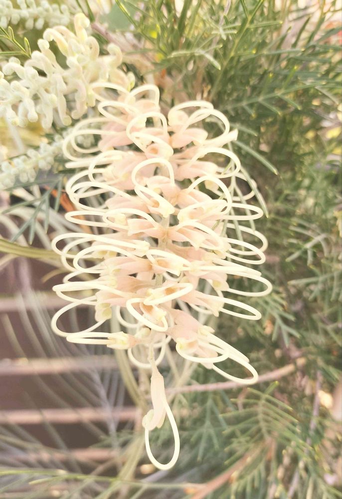 グレヴィレアは、赤や黄色みたいな暖色🏵️が多いですけど、淡いこの色は優しいから余計に注目度高いです!