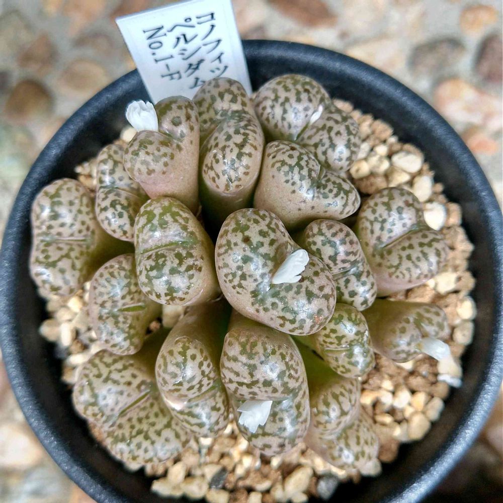 この系のコノフィツムは白い花ばかりですね😅体力つかって枯れないか心配になります(笑)