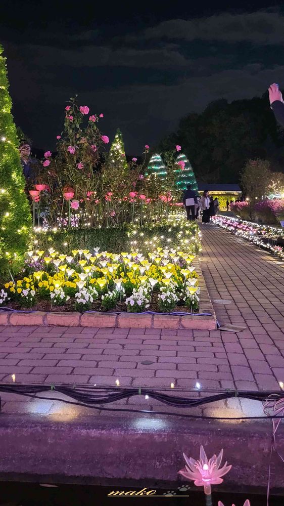 ライトアップの電球の花も