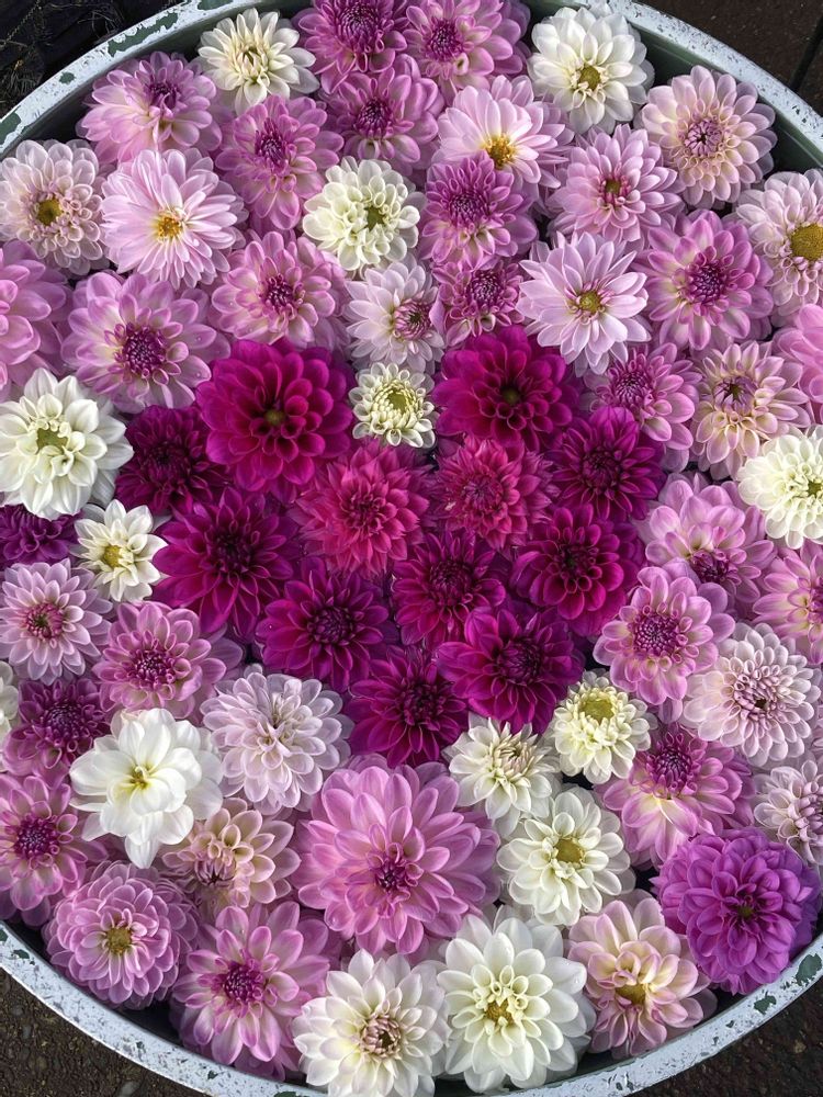 ダリアってホントに種類が多くて、ピンクホワイト系のお花もステキよね〜🩷💓