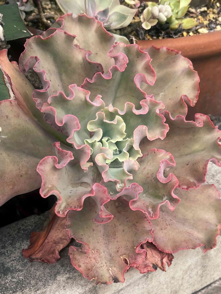 フリル系可愛いですよね❣️調べたら大きくなるタイプとならないタイプとあるみたいですよ❗️これは今日見たんですけどほんと大きくてフリルも綺麗でした🧡高砂の翁に似てるようで育て方も楽なようです☘️