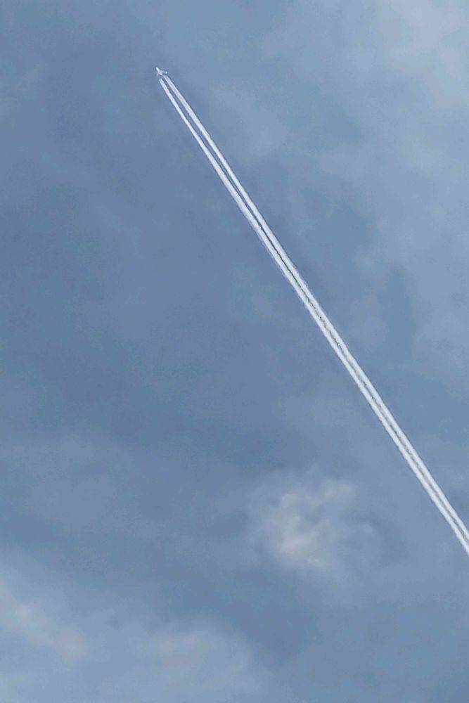 最近私も良く飛行機✈️雲を見かけますが、🚗運転中なので撮影出来ていません。