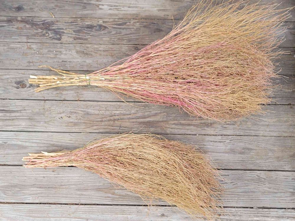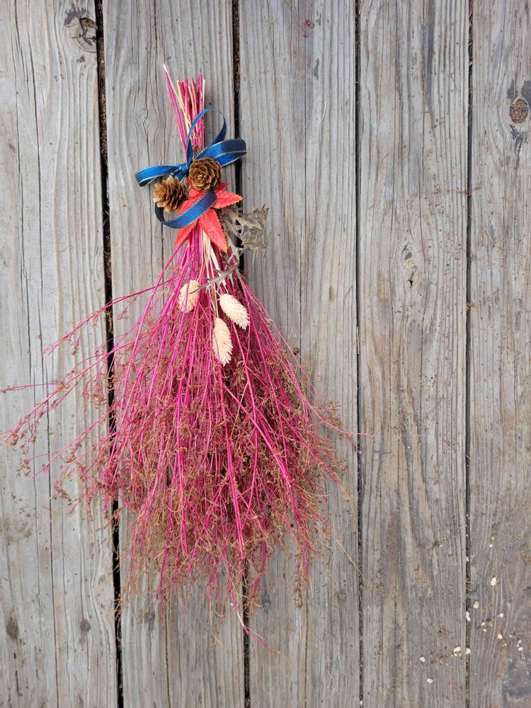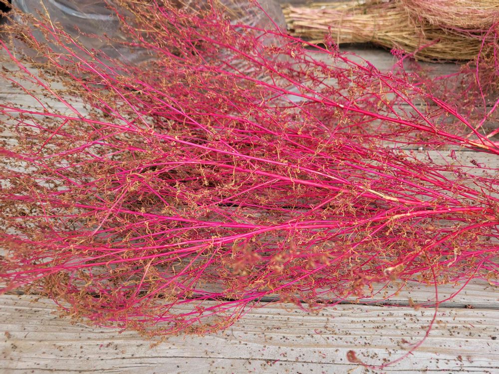 今年もコキアでホウキ作りとはじめたものの夏場暑かったせいか今年のコキアは一番大きくなりまして種もどっさり収穫出来どうしようっ😵て感じですがホウキだけでなく真っ赤に染まったものはスワッグも作成してみました!