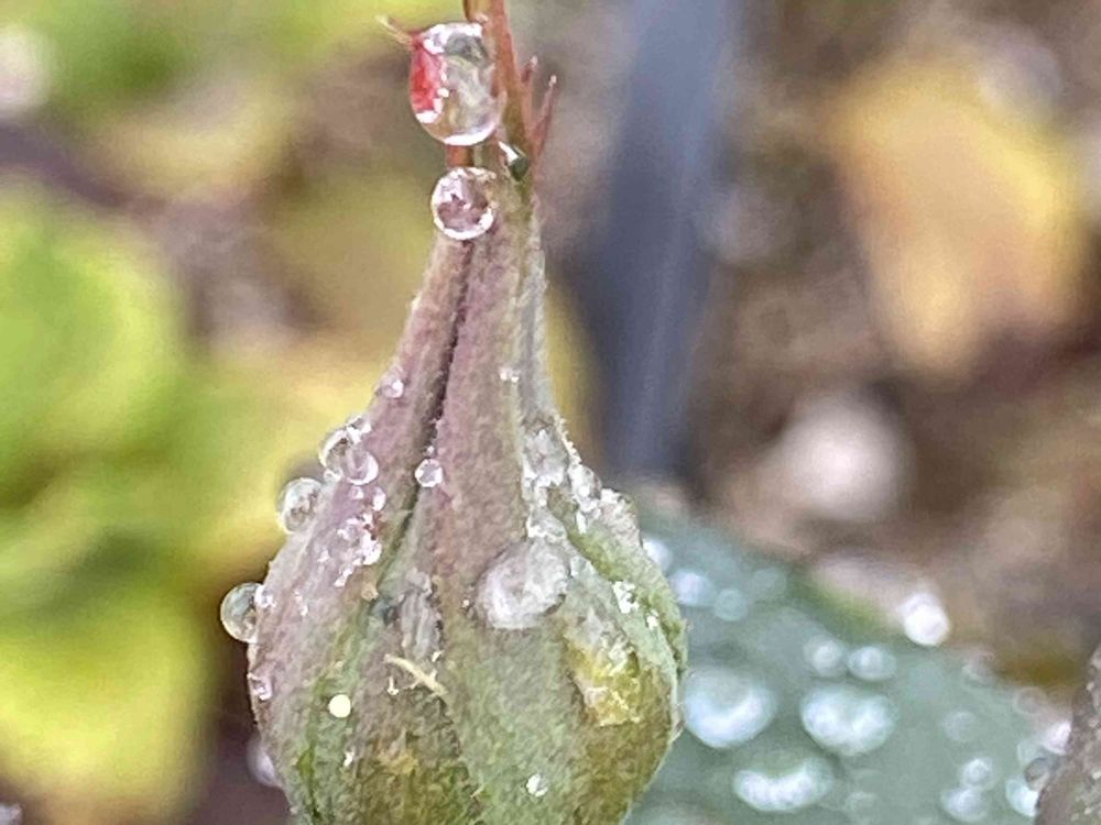 粒々きらきらの雨粒たち、蕾の先っちょにも可愛いの居ますねぇ(*´˘`*)♡"