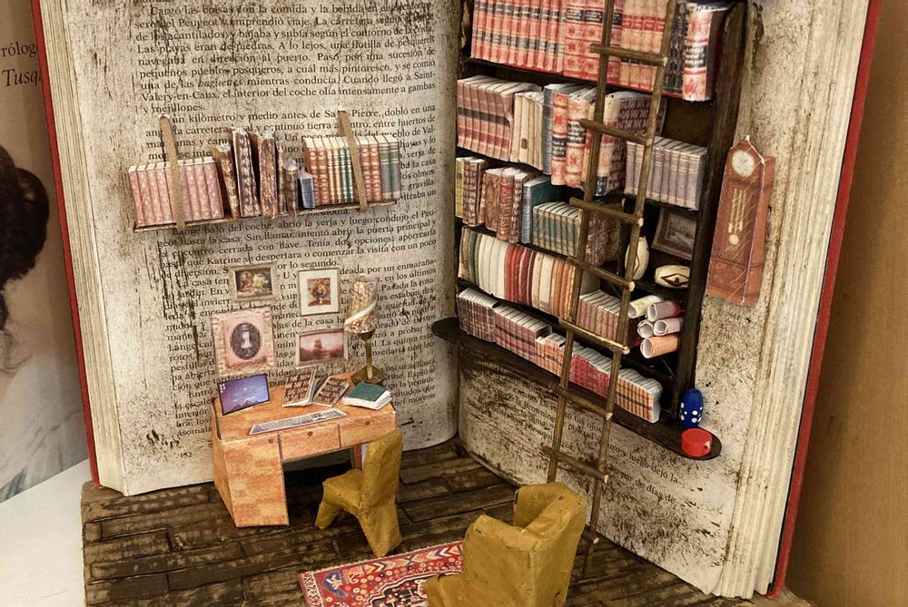 ③読書の秋(図書館のミニチュアディスプレイ)