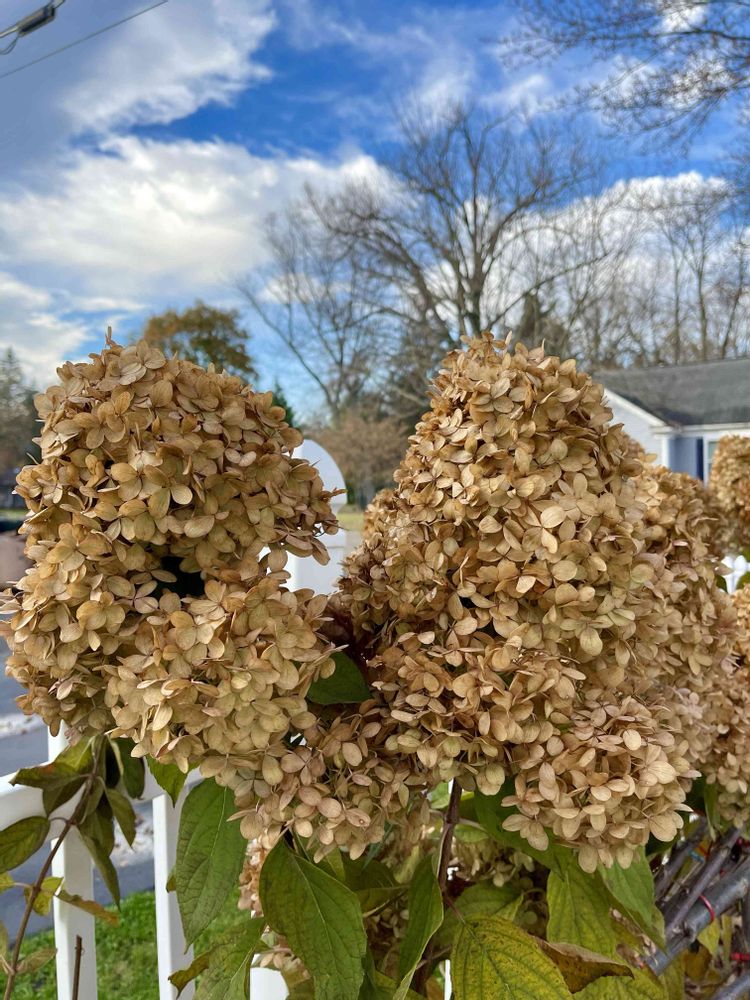 冬の彩り(?)として切らないでおく人も多いけれど、風で花房がちぎれて散らばるのが嫌で、我が家では冬前に切ってしまう