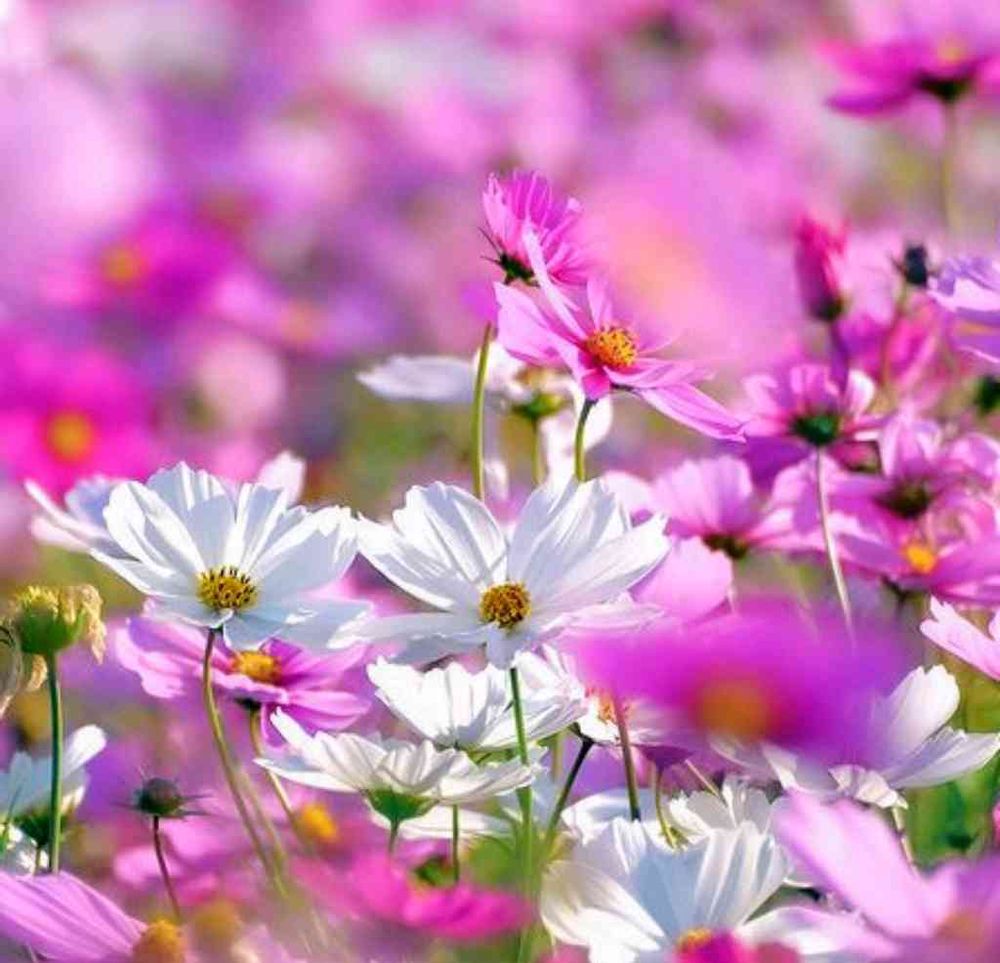 コスモスの爽やかな彩りが、楽しい歌声を響かせる様に咲き誇る、眺めているだけで、心が和み、ルンルン気分だなぁ🎵✌️