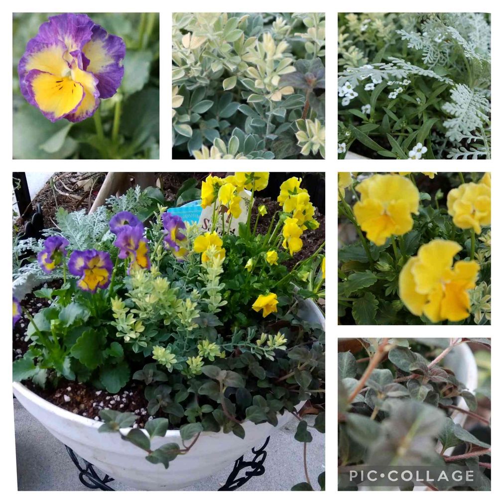 先日作った義理のお母さんにプレゼントする寄植えです。毎年この時期に寄植えをリクエストされて作ってます。黄色が好きなお母さんに神戸べっぴんさんビオラをメインにリーフを足して作りました。