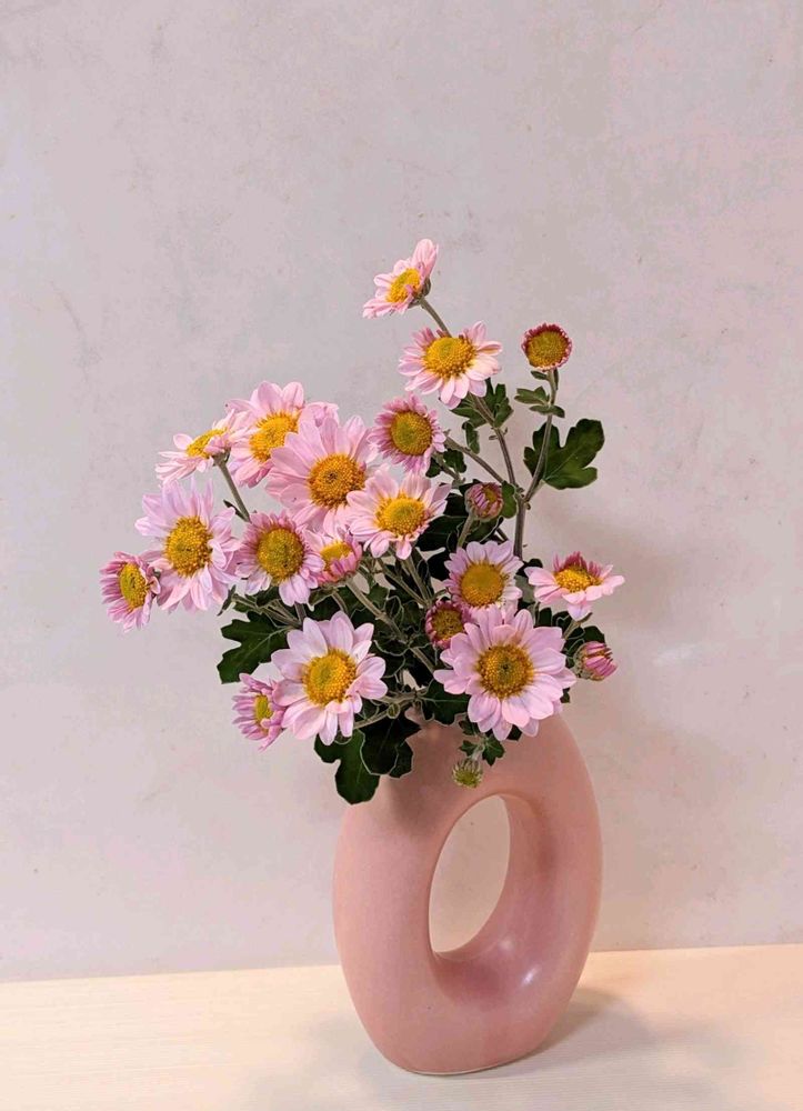 お洒落な花瓶!!優しい淡いピンクのマムもピッタリですね〜😊🩷🌼🩷🌿