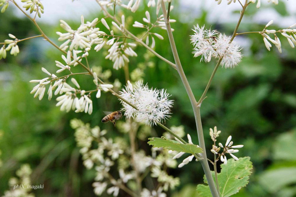 タケニグサの花を訪れるミツバチ
