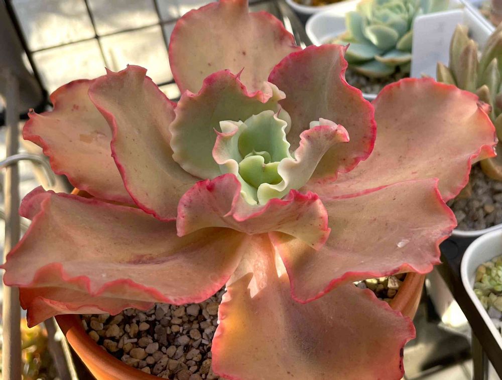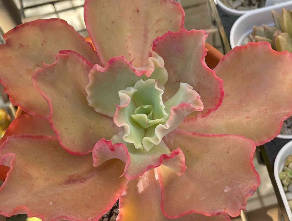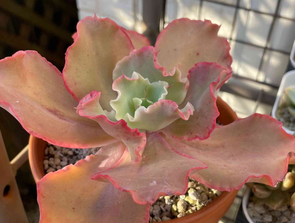夏に下葉が赤くなるけど、これから春にかけて、美しい青緑ピンク?のフリフリ、フリルですね😁🎶