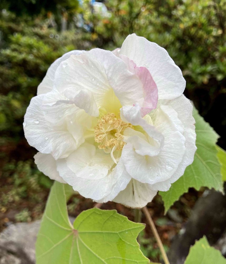 まあ、嵐の中咲く酔芙蓉の花。