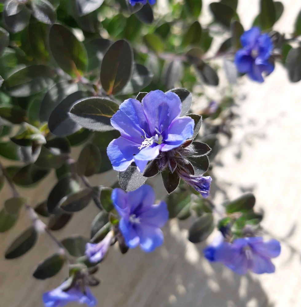 先月後半から寒さで葉っぱが紫に変わったエボルブルスブルーラグーン、シックな色合いでまだ咲いています🌸