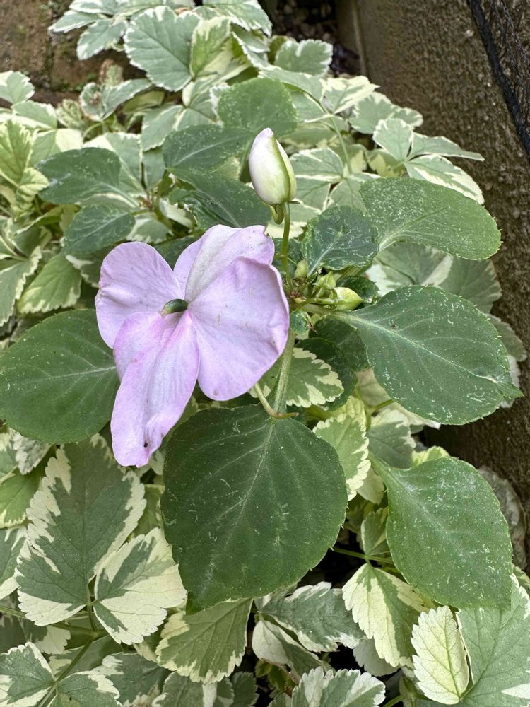 エゴポディウムバリエガータの中から顔を出したインパ。