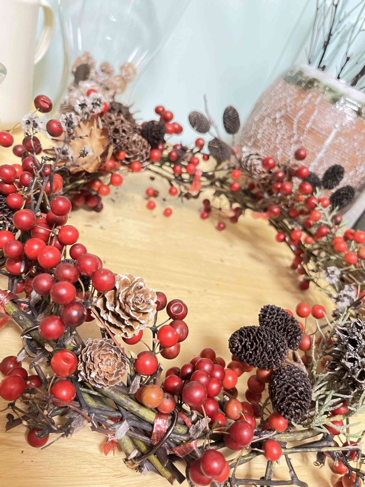 木の実の接着はリースワイヤーですか?グルーガンですか?完成した作品も見たいです😊