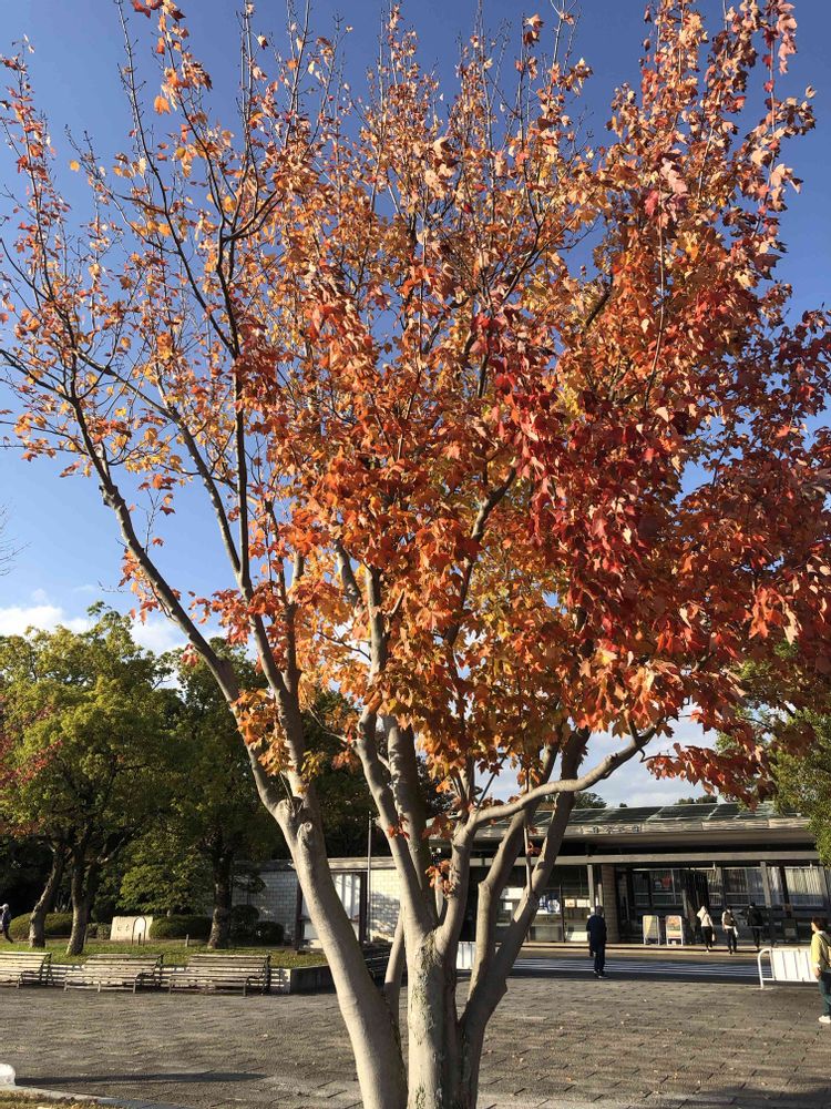 先日、万博公園のバラ園近くにて、カナダ🇨🇦のカエデ「アメリカハナノキ」の紅葉をパチリ!📸🍁😄