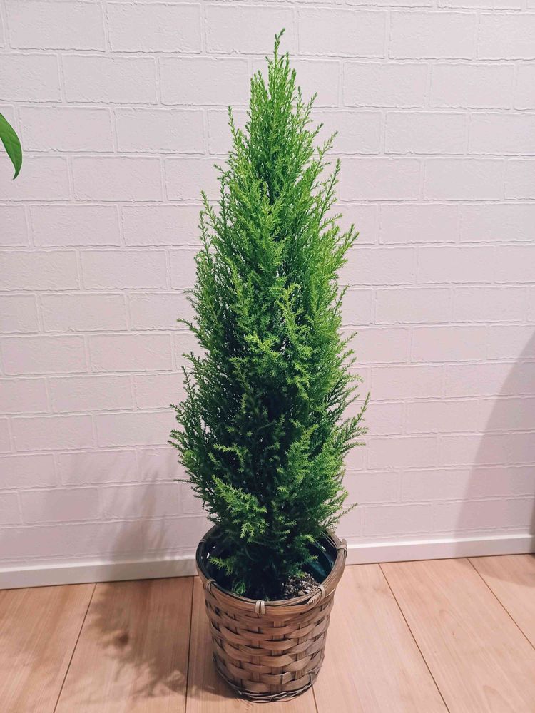 立派な感じです。80cmくらいありますか❔私は昨年、ゴールドクレストウィルマGと言う小ぶりなタイプを購入し、寄せ植えしたのですが…冬が終わる3月頃から中心が枯れ始め、その際のお手入れを熟知してなくて、枯らしてしまったのでした😅🙇♀️