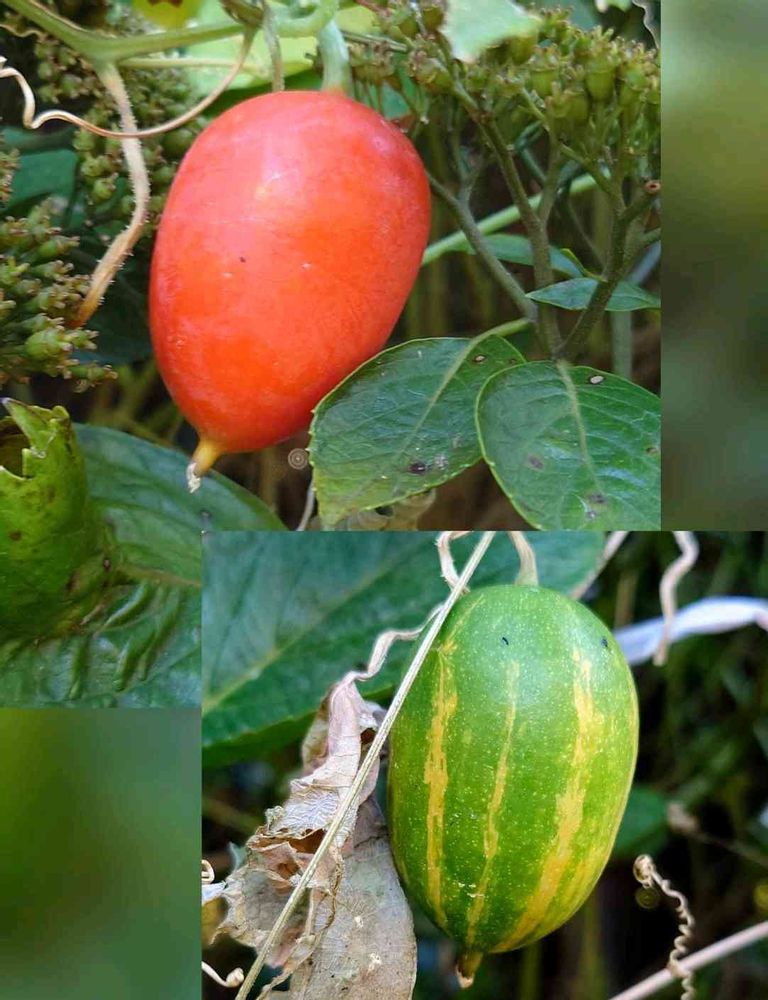 キカラスウリの実も赤と緑❓熟すと黄色ですか❓