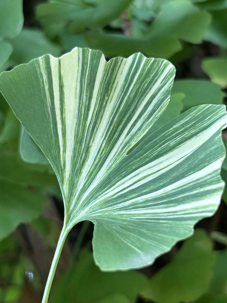 イチョウの木全体が斑入りではないです😅太い幹から出ている胴吹きの数枚の葉っぱだけ斑入りでした‥フイリイチョウとは言わないのかな??写真はこれしかないのですが‥どれも微妙に斑の入り方が違っててどれも美しかったです🥰