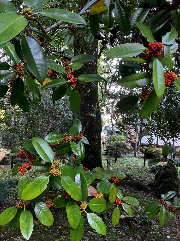 裏庭には大きなタラヨウの木があります。