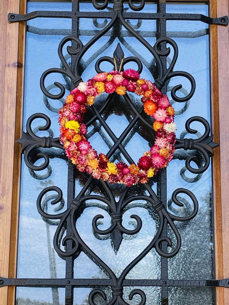 種から育てた『帝王貝細工』ヘリクリサムのお花を使ってリースを作りました🩷