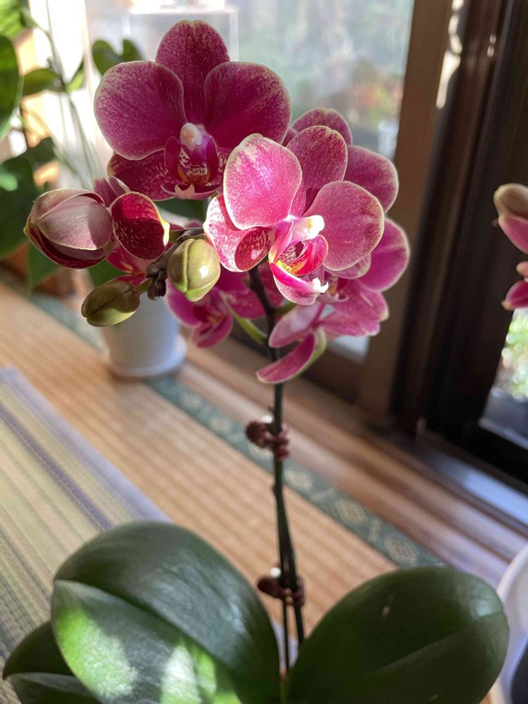 午後はミディ胡蝶蘭網戸越し日向ぼっこ✨💕🎶