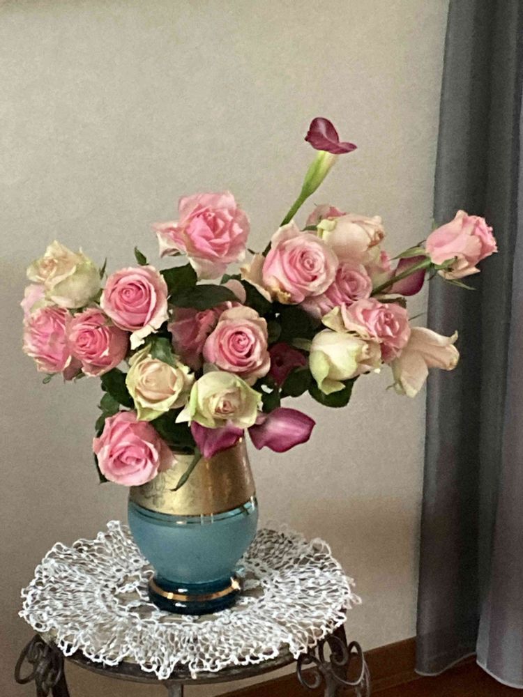 豪華な薔薇に素敵な花入💓