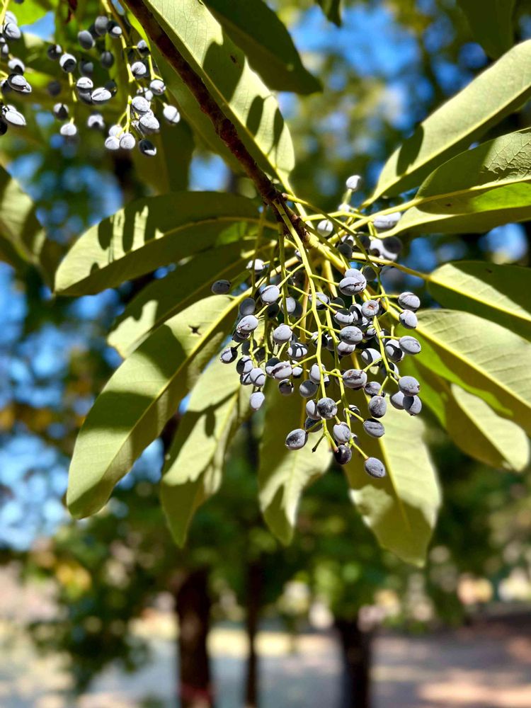府中の森公園で撮影しました。とても背の高い木で、あまり見た事がありません。ぶどうの実のようなものが付いていて、気になってしまい思わず写真撮りました。